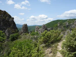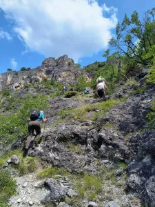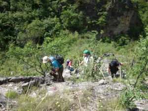 От двете страни над вас се извисяват внушителни скални грамади. С навлизане навътре в каньона растителността става все по-буйна и гъста, В дадено момент пътеката се разделя и наляво започва да се катери нагоре. Има малки каменни пирамидки показващи посоката.