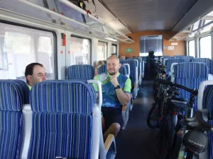 До Дупница се придвижихме с влака, беше с мотриса Сименс, специално този вид никак не беше удобна за превоз на повече колела, а бяхме само 7 човека със 7 велосипеда. Например в Сименс мотриса от Земен до Радомир сме събирали без проблем 14 колела, ама там самата мотриса имаше друго разпределение.